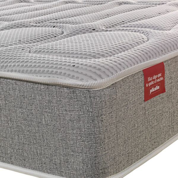 El colchón de muelles ensacados África es un colchón de muelles ensacados y espuma viscoelástica que se adapta perfectamente al cuerpo de cada persona. Ofrece una firmeza media-alta y una transpirabilidad elevada. Gracias a la espuma viscoelástica este colchón acoge a la persona en función de la presión y de su huella térmica. Además, reduce la presión sanguínea y dispersa el calor que generamos al dormir. Si compartes el espacio de descanso, gracias a los muelles ensacados no notarás los movimientos de la otra persona al dormir. Todos los colchones de Pikolin cuentan con la tecnología de higiene total Triple Barrera.